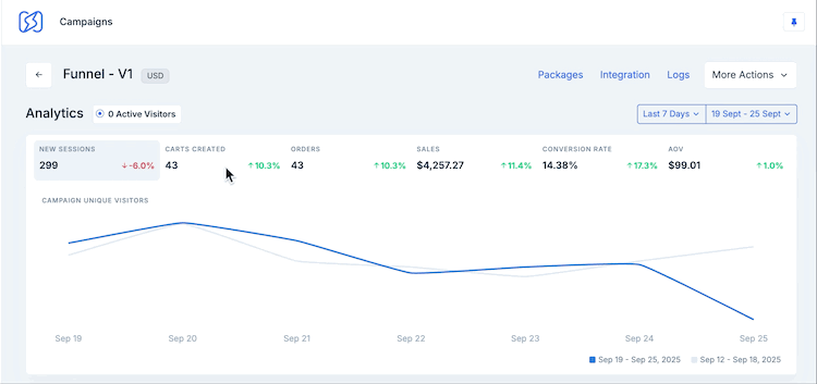 It’s easy to spot trends and catch underperformance early. If a campaign sees a spike in cart abandonment or a dip in orders, you’ll know right away and can take action. You can monitor performance trends over time and compare period-over-period results to identify optimization opportunities.
