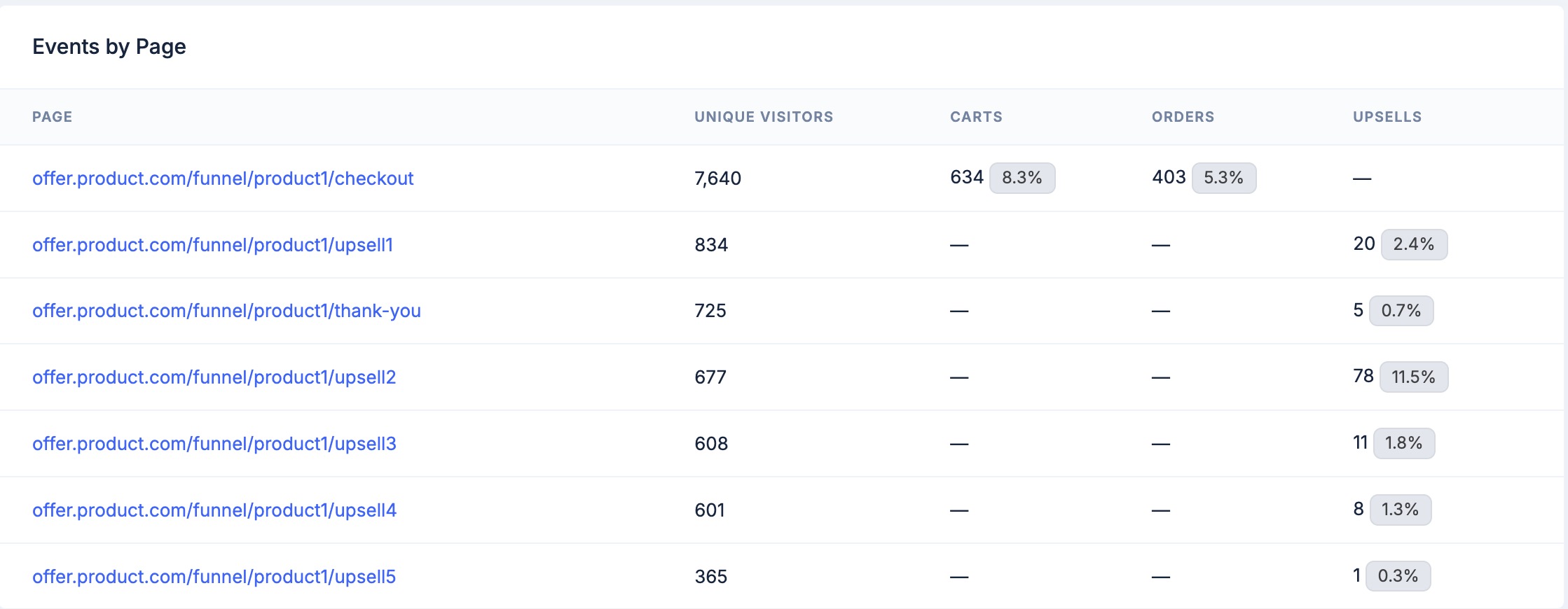 The most powerful aspect of Campaign Analytics lies in granular page-level tracking. Every step in your funnel, from initial landing pages through presell content, checkout processes, and post-purchase upsells, generates specific performance data.